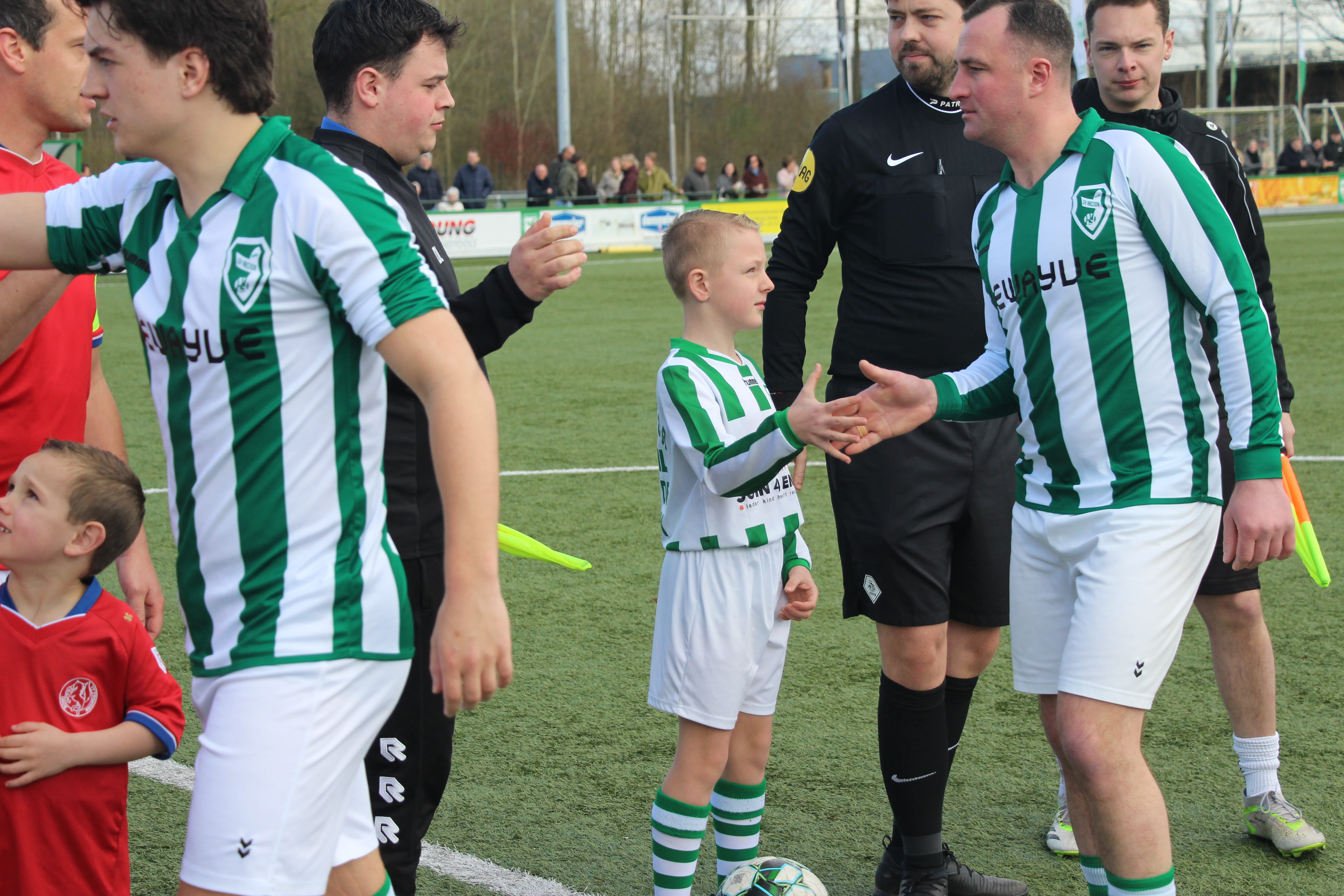 De opkomst van de elftallen was heel speciaal, want de Pupil van de Week liep uiteraard voorop en spelers van de jongste Hector en Twenthe jeugd liepen ook mee naast de spelers.