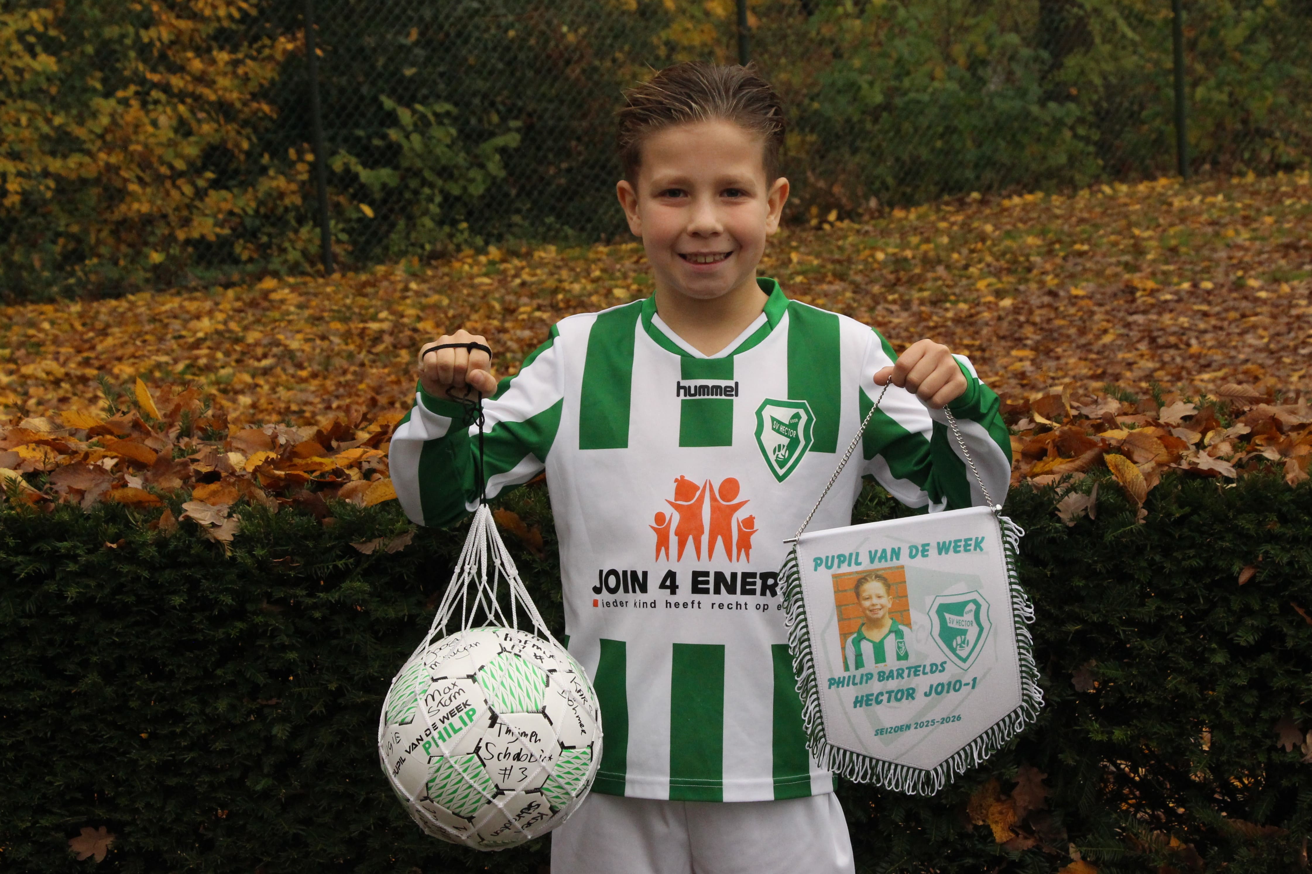 Philip speelt in Hector JO10-1 rechts op het middenveld en pikt zo af en toe zijn doelpuntje mee. Zijn hobby’s zijn tekenen en uiteraard voetballen.