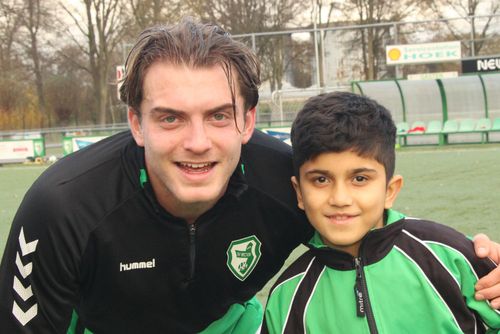 Met Pim Hofmeijer wilde hij graag op de foto (collega’s verdediger dus). En natuurlijk ook op de foto met de ongeslagen trainer Joost.