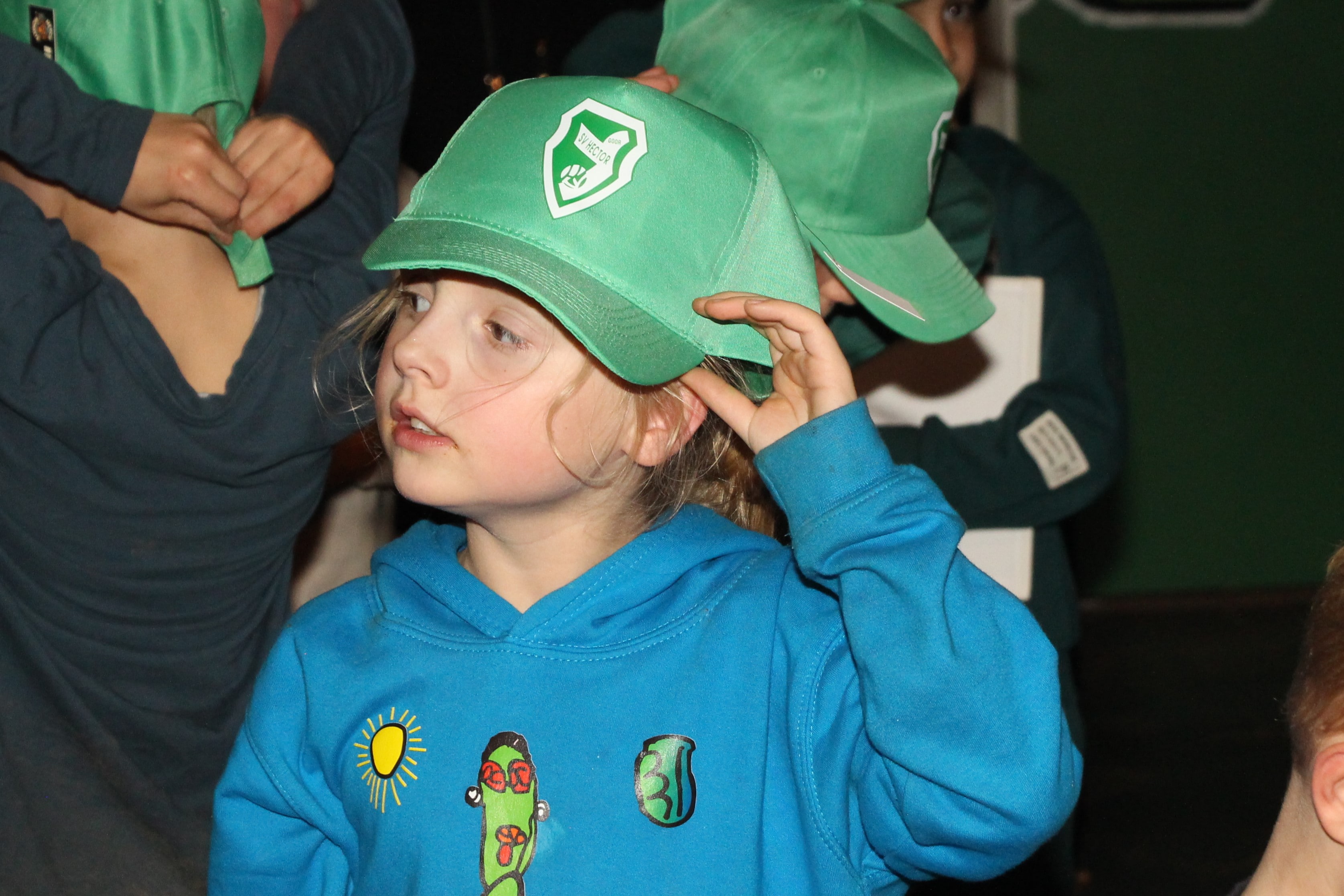 Aan het eind van de bijeenkomst kregen alle kinderen een kadootje, een prachtige Hector pet. Die zullen de komende tijd ongetwijfeld vaak te zien zijn op het Doesgoor.