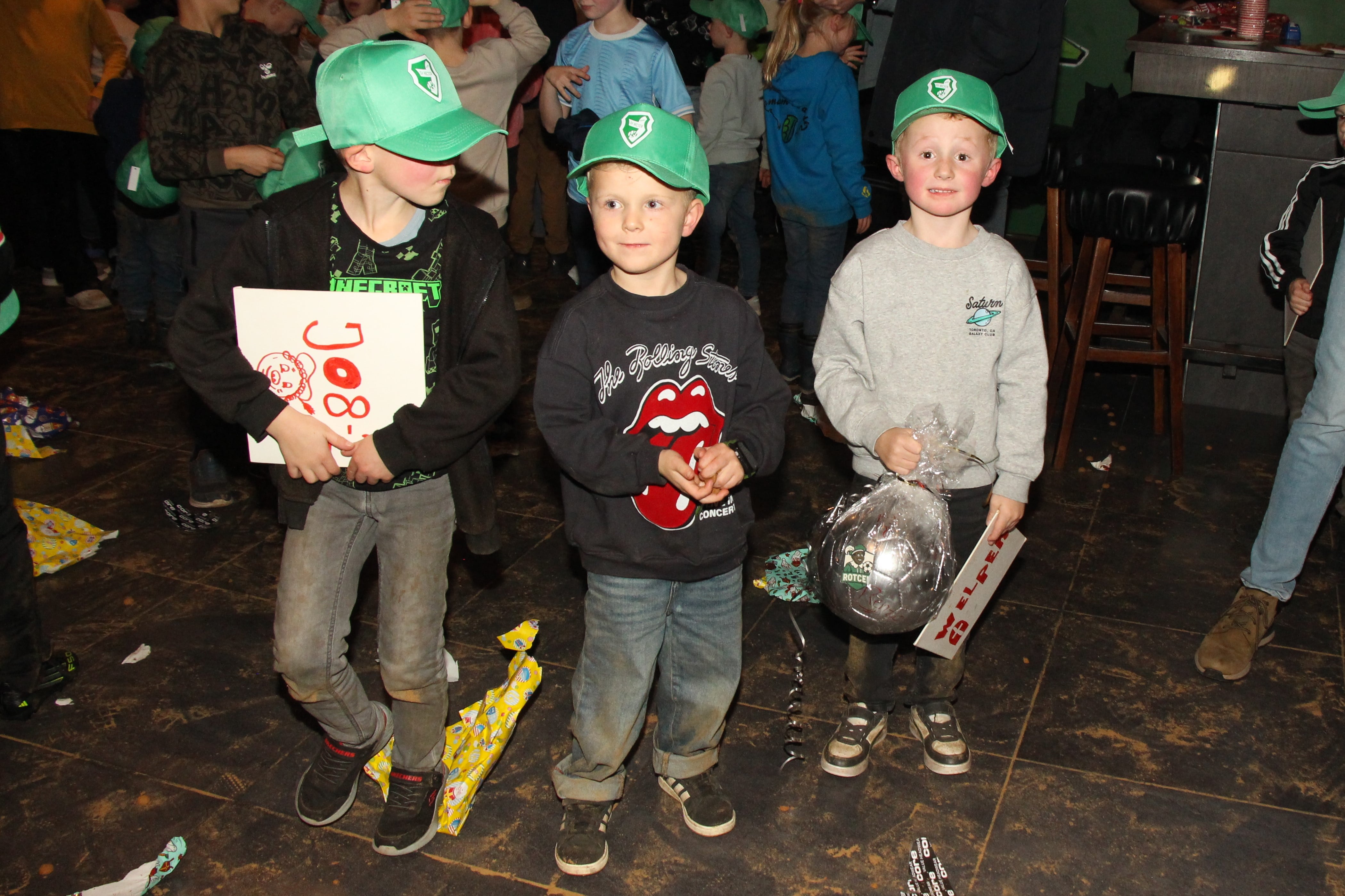 De teams kwamen één voor één bij Sinterklaas en werden door hem toegesproken. Er was een echte voetbalquiz met als hoofdprijs een zilveren bal. Glorieuze winnaars waren de welpen!